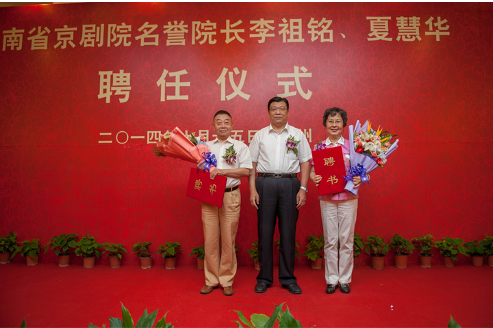 趙素萍在致辭中指出京劇作為中華文化瑰寶,行當(dāng)全面,表演成熟,氣勢(shì)宏美,既是近代中國(guó)戲曲的代表,又是中國(guó)的國(guó)粹。河南的京劇事業(yè)在省委、省政府的高度重視、大力支持下,和豫劇等地方戲一樣,呈現(xiàn)出了良好的發(fā)展勢(shì)頭。特別是近年來(lái),在李祖銘先生、夏慧華先生的精心指導(dǎo)下,也可以說(shuō)是手把手地傳帶下,河南京劇先后推出了《龍鳳呈祥》、《野豬林》、《劉伯溫》等作品,河南京劇院也由日漸衰微,重新獲得新生。但由于種種原因,同豫劇等地方戲相比,河南的京劇藝術(shù)發(fā)展還存在著一定差距和問(wèn)題,還有很大的發(fā)展空間。李祖銘先生是著名的京胡大師,家傳深厚,琴技精純,曾參加《三上桃峰》、《山城圍困戰(zhàn)》、《新?tīng)q明珠》等多部京劇作品的音樂(lè)唱腔設(shè)計(jì)。夏慧華先生是著名的京劇藝術(shù)家,表演簡(jiǎn)潔細(xì)膩、音色甜美寬亮,行腔大方自然。兩位先生都是我國(guó)京劇界有影響的大家大師。今天,我們以省政府名義聘請(qǐng)李祖銘先生、夏慧華先生擔(dān)任河南省京劇院名譽(yù)院長(zhǎng),就是想借兩位大師的藝術(shù)智慧和影響力,推動(dòng)河南京劇以及其他劇種藝術(shù)水平進(jìn)一步提高,獲得更好更快的發(fā)展。