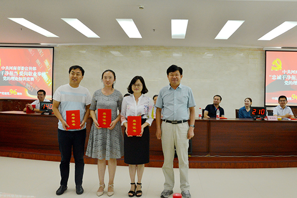7月7日下午,省委宣傳部舉辦“忠誠干凈擔(dān)當 愛崗敬業(yè)奉獻”黨的理論知識競賽,省委網(wǎng)信辦副主任蔡新民同志、省委宣傳部副巡視員趙鋼同志、《黨的生活》雜志社總編趙云龍同志、省委宣傳部副巡視員李文良同志等部領(lǐng)導(dǎo)出席,部機關(guān)全體黨員參加。